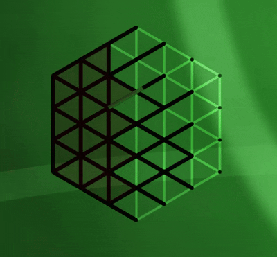 - A large SVG pegboard is in the Intro slide that animates lines and filling in triangles as the become bound by the lines.
